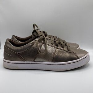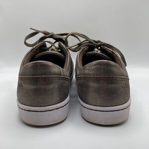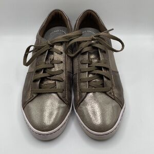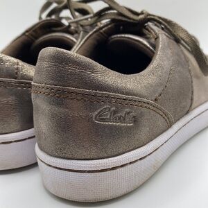 CLARKS PAWLEY RILEE METALLIC LEATHER SNEAKERS IN GRAY WOMEN’S SZ 6