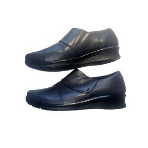 CLARKS SOFT CUSHION BLUE LEATHER SLIP ON LOAFER SIZE 7 W