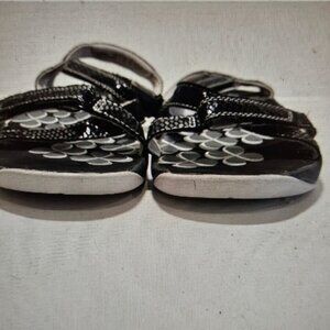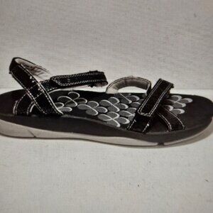 CLARKS SZ 7 Open Toe Black and Gray Tresca Trace Ankle Strap Flat Sandal NWOB