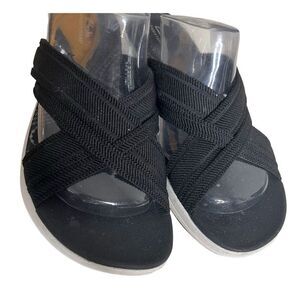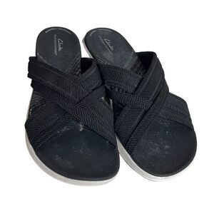 CLARKS Sandals Mira Isle Slide Black White Cloudsteppers Textile Upper Size 10
