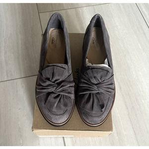 CLARKS Sharon Dasher Loafer Suede Dark grey Size 6.5 Lightweight Platform