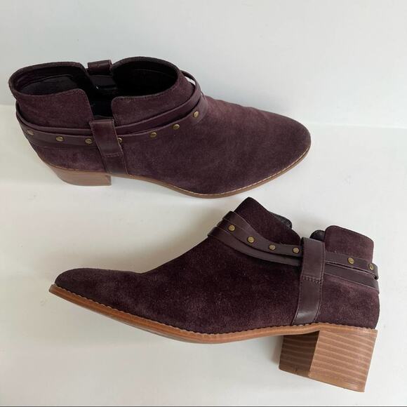 CLARKS Suede Leather Ankle Boot Burgundy Red
