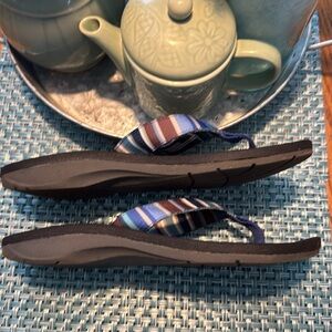 Excellent condition Clark’s Tate Muse striped blue flip flop. Size 9