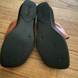 CLARKS Tan Leather Slip On Slide Wedge Sandals - Size 5 - Great Condition!