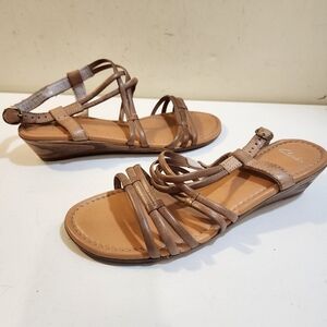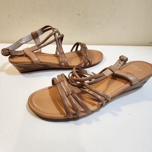 CLARKS Tan Leather Upper strappy Wedges Sandals size 9M