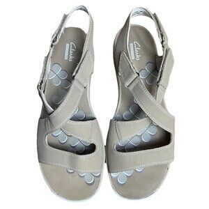 CLARKS Tresca Curve Wedge Sandal Women’s US 9 Greystone Tan Adjustable