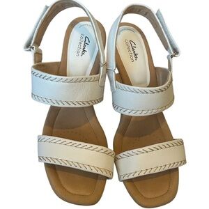 CLARKS ULTIMATE COMFORT WEDGE KYARRA ROSE SLINGBACK SANDALS, White, Size 10.5