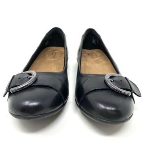 CLARKS WOMENS NEENAH LARK BALLET FLATS - BLACK LEATHER WIDE