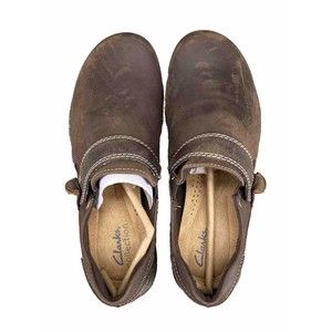 CLARKS WOMENS SIZE 6.5 ROSEVILLE DOT DARK BROWN LEATHER SLIP-ON LOAFER