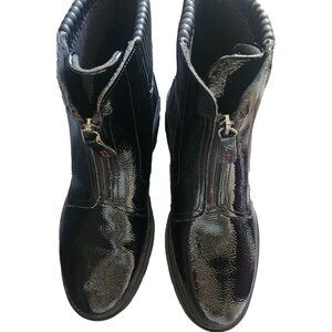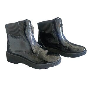CLARKS Women's Black Calla Zip Booties Crinkle Patent Synthetic Sz 9W Lug Sole