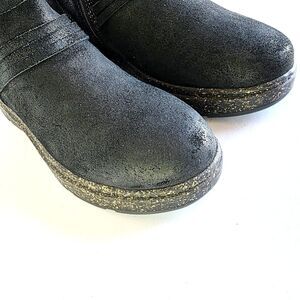CLARKS Women's Black Suede Noralyn Strap Booties Sz 7 37.5 Comfort Casual