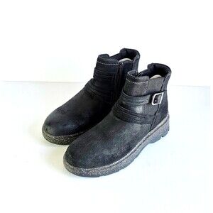 CLARKS Women's Black Suede Noralyn Strap Booties Sz 7 37.5 Comfort Casual