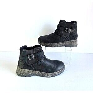 Clarks Noralyn Strap Bootie Bring a whimsical addition to your bootie collection by introducing the Noralyn Strap bootie from Clarks. Whether it's the ribbed elastic pane or the cork-effect on the sole, you'll surely grab attention wearing this round toe bootie. With an Ultimate Comfort foam footbed, experience enduring cushioning. FEATURES * Suede upper * Inside zipper closure with elastic gore * Round toe * Synthetic lining * Ultimate Comfort synthetic foam footbed * Approx. 4 1/4 inch shaft height * Approx. 9 inch leg opening * 2 inch heel * Synthetic sole Booties are a women's US 7 (EU 37 1/2, UK 4 1/2), with the footbeds measuring approximately xx inches from heel to toe. They are Medium in width. Booties are in great pre-loved condition, showing minor signs of previous ownership. Most notably, there is some distressing at the right toe (which blends nicely with suede uppers and is barely noticeable in person when worn). Going Out, Casual, Outdoors, Travel, Fall, Fallcore, Autumn, Harvest