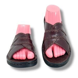 CLARKS Women's Brown Open Toe Slip On Sandals 10 Chunky Y2K Comfort Preppy