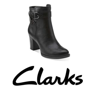 CLARKS Women's Jolissa Topaz Ankle Boot Black Leather Size 10M