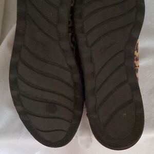 Faux suede animal print slip on shoe. Cushioned insole. Rubber soles. Lightweight. Like new.