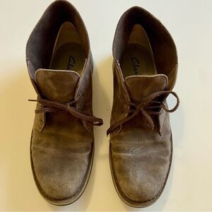 CLARKS men’s boots 10 chukka brown distressed suede leather lace up round toe
