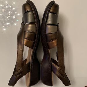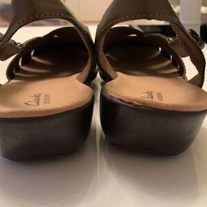 Clarks Bendables Womens bronze leather closed toe sling back sandals. Size 38