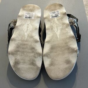 Great pair of Clarks comfort sandals. Size 8 in camouflage print worn one time. So in excellent condition.