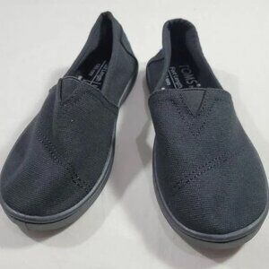 These classic black canvas shoes by Toms are the perfect addition to any girl's wardrobe. With a slip-on style and linen upper material, these shoes are comfortable and casual for any occasion. Available in kids sizes T 11 and T 13, they are great for growing feet.