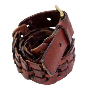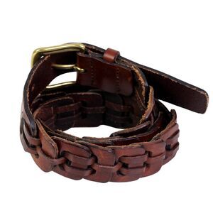 CLASSIC BRAIDED BROWN GENUINE LEATHER 1 1/4"Wd DRESS WOMEN'S BELT Sz M (C90