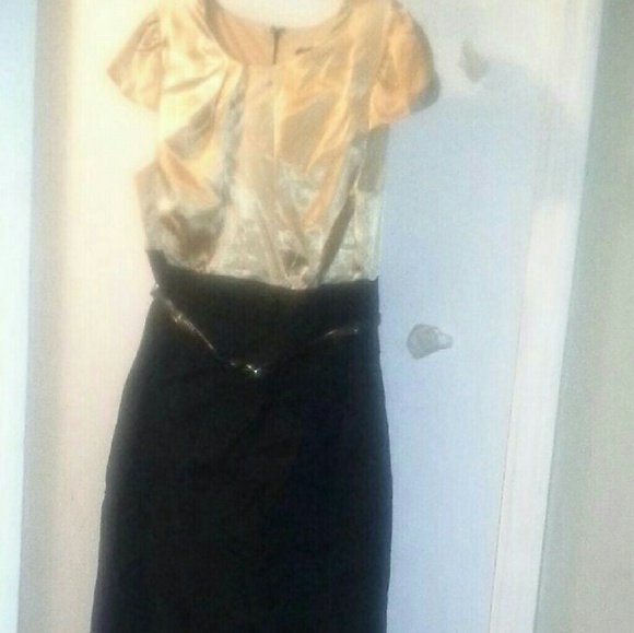 CUTE and CLASSY GOLD and BLACK DRESS. SATIN TOP PENCIL BOTTOM