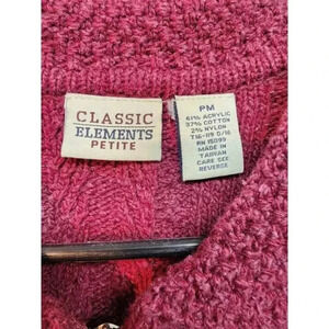 CLASSIC ELEMENTS PETITE Cardigan SWEATER Burgundy PL Knit Wool Cotton Silk