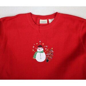 CLASSIC ELEMENTS - WOMEN'S RED SNOWMAN EMBELLISHED PULLOVER SWEATSHIRT - SIZE M