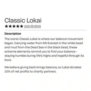 •We believe giving back brings balance, so Lokai donates 10% of net profits to charity partners.