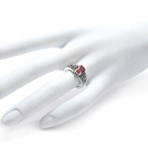 Classic styling and traditional shapes make this marcasite ring a timeless piece of jewelry. A bright red CZ adds extra sparkle.