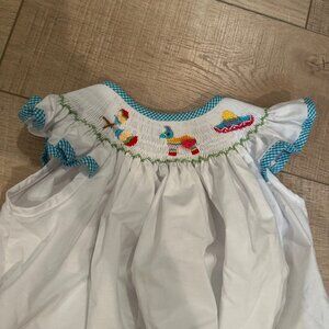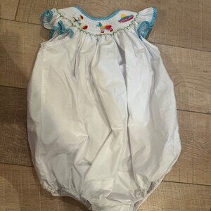 CLASSIC WHIMSY 2T WHITE SMOCKED ROMPER FIESTA
