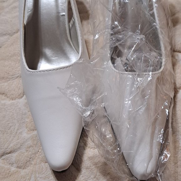 Classique white pointed toe pumps with cut out sides. 2 1/2" heel. Never worn. Had surgery and unable to wear. Been stored in closet. New w/o box. .