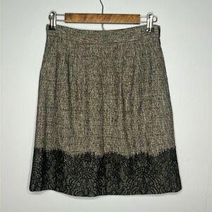 CLASSIQUES ENTIER SIZE 0 GRAY WOVEN SKIRT WITH BLACK LACE