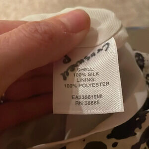 Classiques Entier silk black and white womans top. The sizing label has been cut out. This top is in excellent condition and it has a 3/4 zipper on the side.