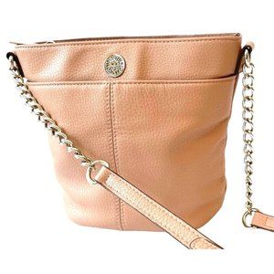 CLASSY Anne Klein Pink/Salmon Crossbody/ Shoulder Bucket Bag Chain/Leather Adjustable Strap