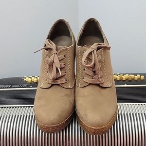 CLASSY COMFORTABLE XAPPEAL TAUPE FAUX SUEDE WEDGE LACE UP ANKLE BOOTIES SIZE 8