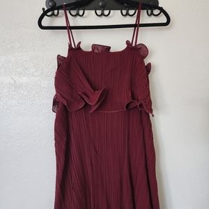 CLAUDE Ruffle Maxi Dress Small Burgundy Pleated Spaghetti Strap New with Tags