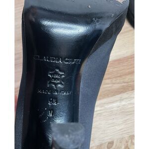 CLAUDIA CIUTI Black Satin Pumps Open Toe Heels Size 9,5 M Italy Perfect