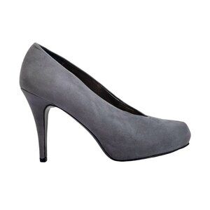 CLAUDIA CIUTI Italy Kristina Gray Suede Pumps Heels 7.5 M Soft Modern Style Almond Toe Narrow Opening Split Toe Suede, All Leather