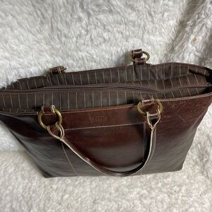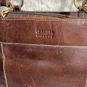 CLAUDIA FIRENZE made in Italy Leather dark Brown large tote stitching accent.antique brass hardwares .top zipper side zipper small side pocket.pre owned in good used condition signs of wear on the leather some discoloration and scratches.ink stains on the lining as well see all pictures any questions please message.see all pictures any questions please message.B11