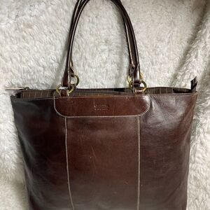 CLAUDIA FIRENZE made in Italy Leather dark Brown large tote stitching accent.