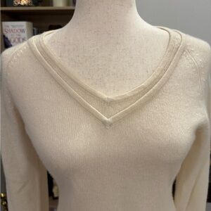 CLAUDIA NICHOLE | Cream V-Neck Cashmere Sweater XS