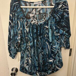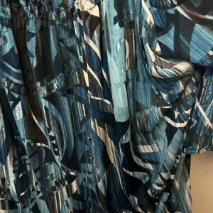 CLAUDIA RICHARD Teal Pullover Scoop Neck Blouse Stretch Pleated Teals Plus Sz 2X