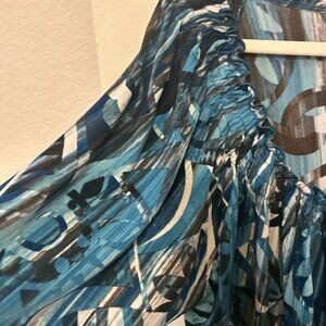 The Claudia Richard Teal Pullover Scoop Neck Blouse is a stylish and comfortable top designed for women in size 2X. Made of polyester and spandex, this blouse features a relaxed fit and a pretty pleated design, perfect for casual or travel occasions during the winter, fall, or spring seasons. The abstract teals color adds a pop of color to your outfit, while the easy-care, stretchy, and wrinkle-resistant fabric ensures low maintenance and high durability. Perfect for a basic yet chic look, this blouse is a must-have addition to any wardrobe.