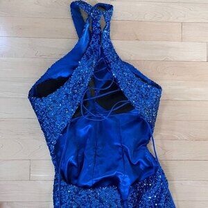 CLAUDINE FOR Alyce Designs With Lace Up Sequin Gown Dress in Saphhire 4