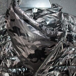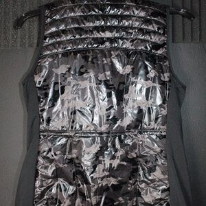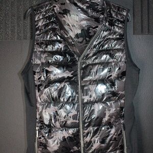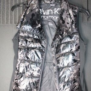 CALVIN KLEIN BLAZER PERFORMANCE, PRINTED BLACK AND PURPLE, SMALL, FUNNEL NECK QUILTED, OUTWEAR