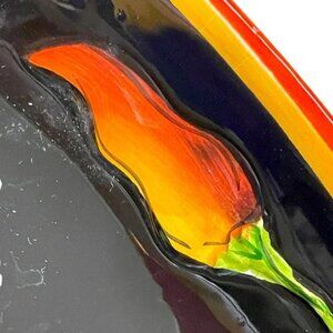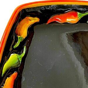 CLAY ART Jalapeño PLATE Hot Pepper Black orange yellow green fiesta 1” d x 8” sq