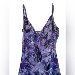 CLE Paris Maxi Halter dress Purple Tie Dye Floral Spaghetti Strap Summer Vintage
