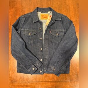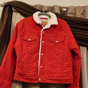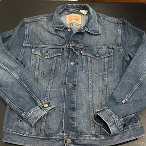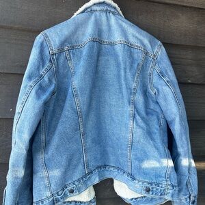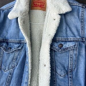 CLEAN Levis size Large Sherpa Denim Trucker Jacket Washed Blue Jeans