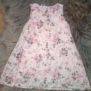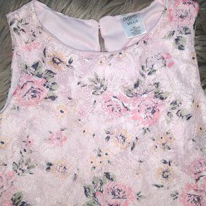 Pink lace dress size xxs 4/5, City Streets, a lovely dress dotted with roses, double lined, easy clasp button, excellent condition, smoke/pet/fragrance free.